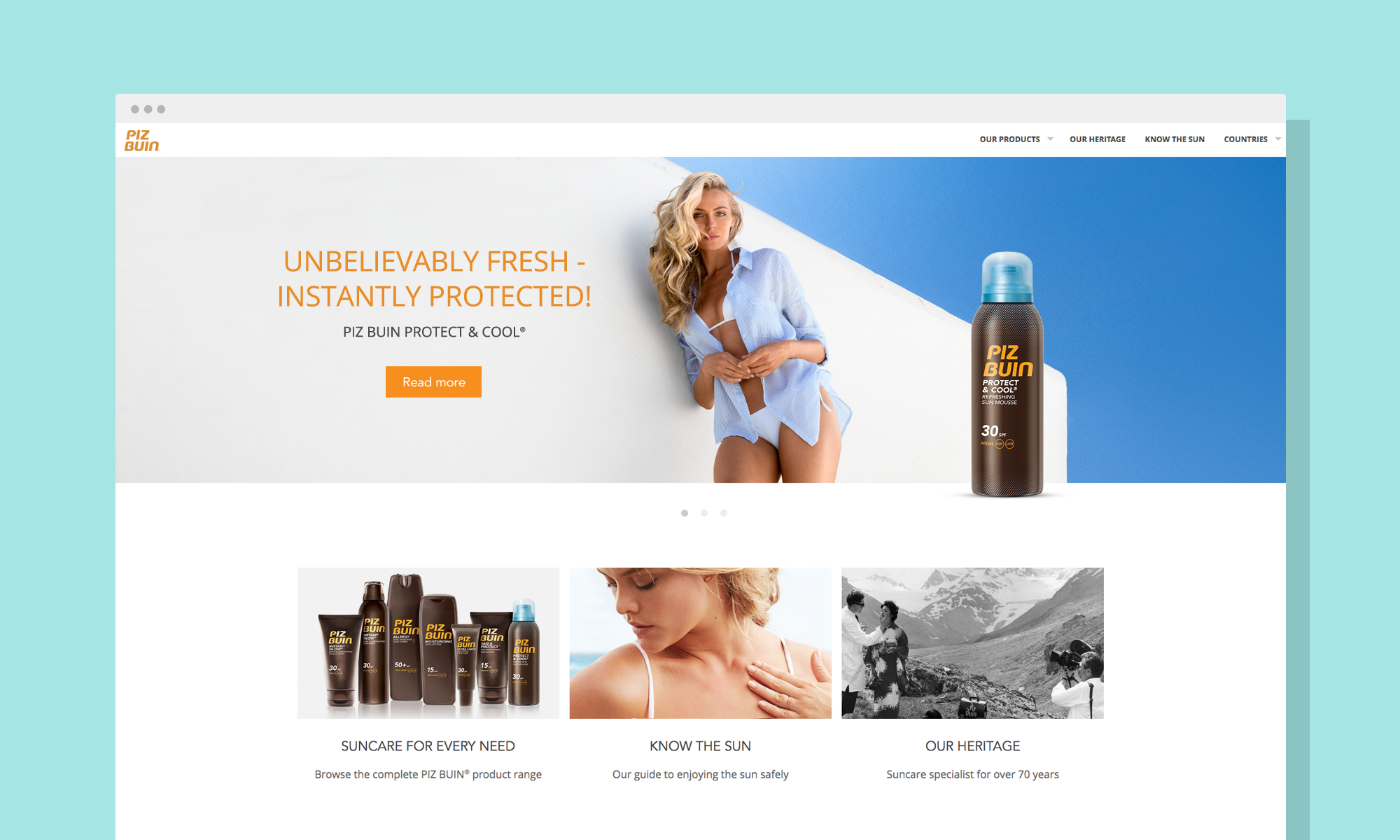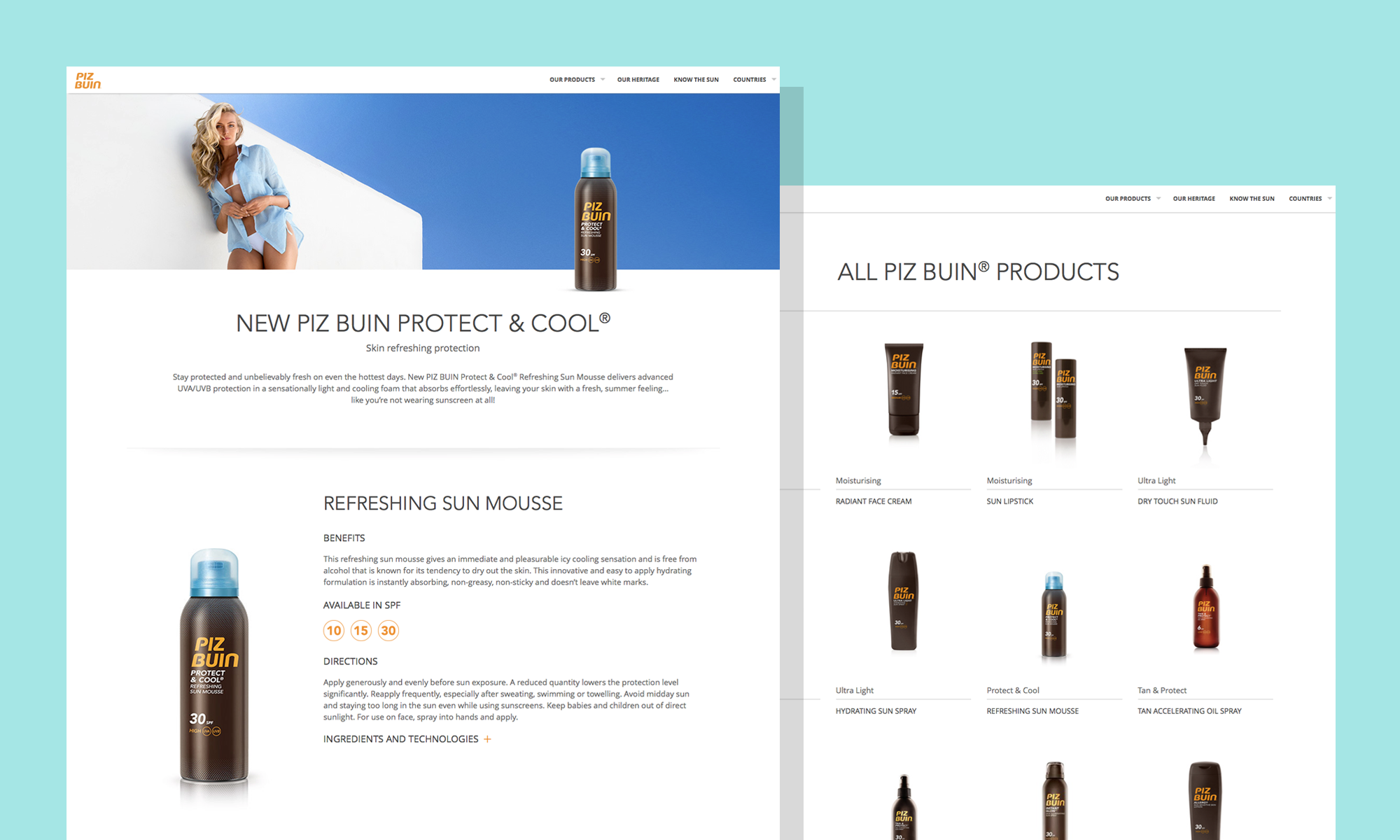 Role UI designType WebsiteRedesign of sun care brand Piz Buin website. Providing essential information about the product range.